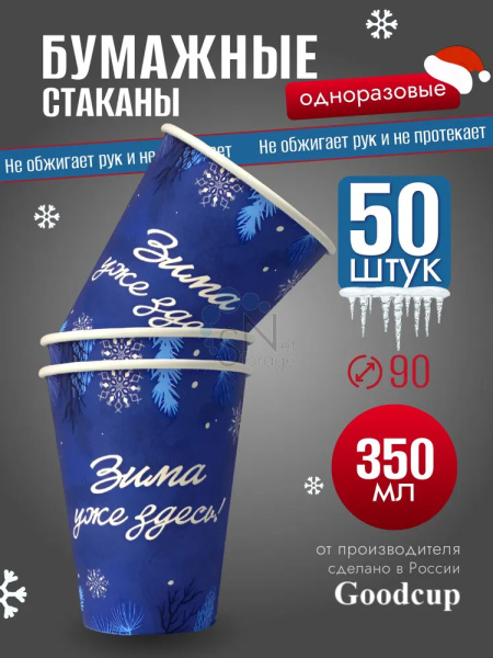 Стакан одноразовый бумажный 350мл для горячих напитков ЗИМА УЖЕ ЗДЕСЬ 141186 (уп 50шт)
